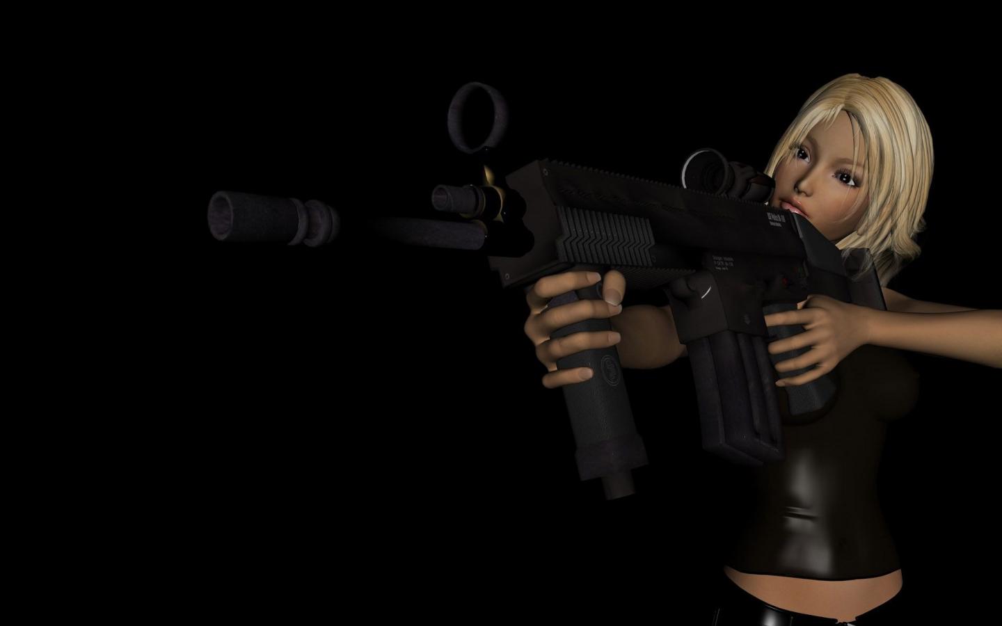Девушка и скорострельное оружие обои для рабочего стола, картинки, фото, 1440x900. | ||||||||||||||||||||||