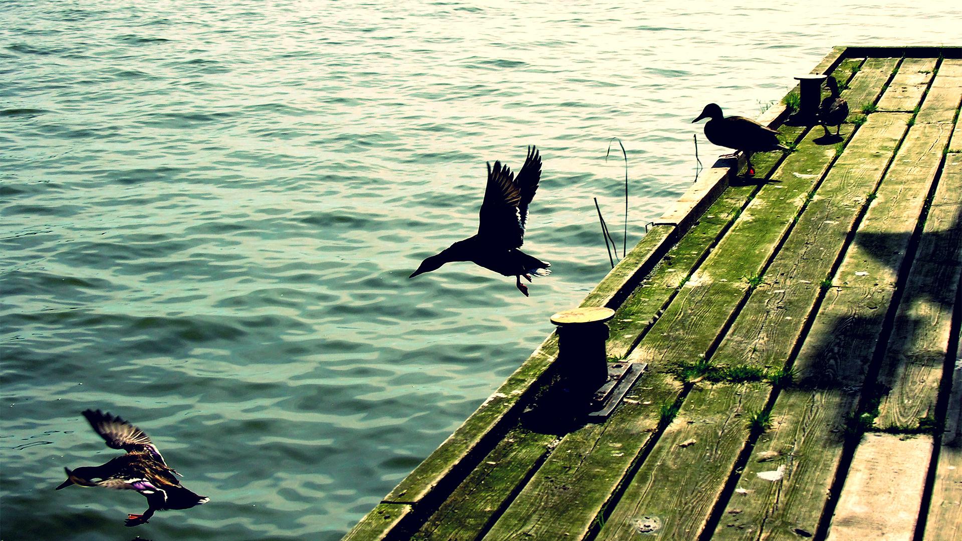 Утки, море, вода, прыжок обои для рабочего стола, картинки, фото, 1920x1080. | ||||||||||||||||