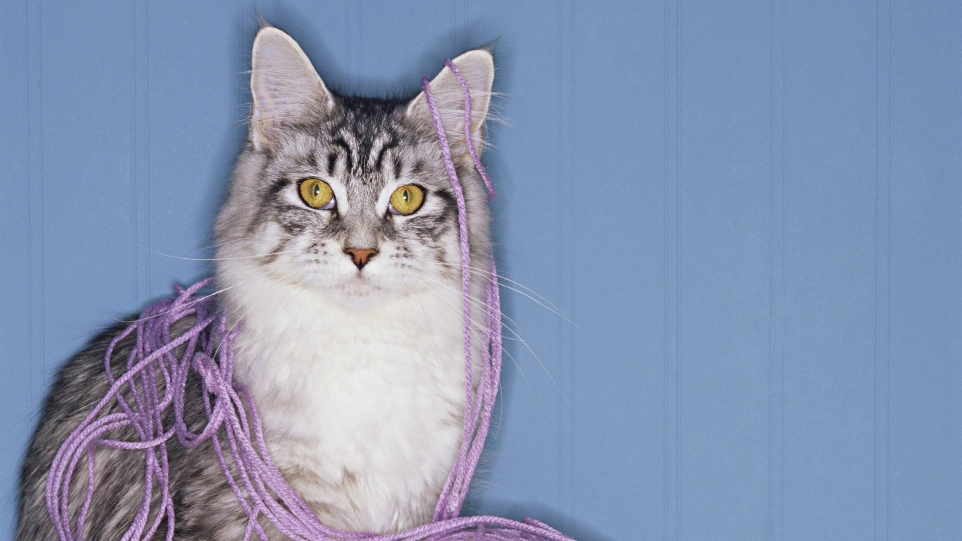 Кошка с клубком ниток обои для рабочего стола, картинки, фото, 1920x1080. | ||||||||||||||||